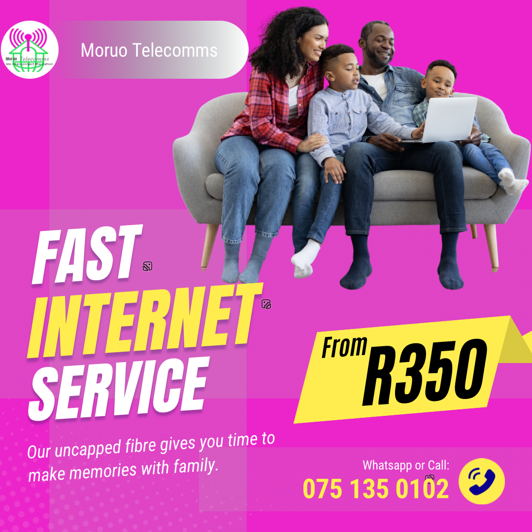 Moruo Telecomms Support (for Openserve Fibre): If you're using Openserve's fibre service through free trial, you can reach Moruo Telecomms on WhatsApp 0751350102, including email at openserve@basadiwifi.online.